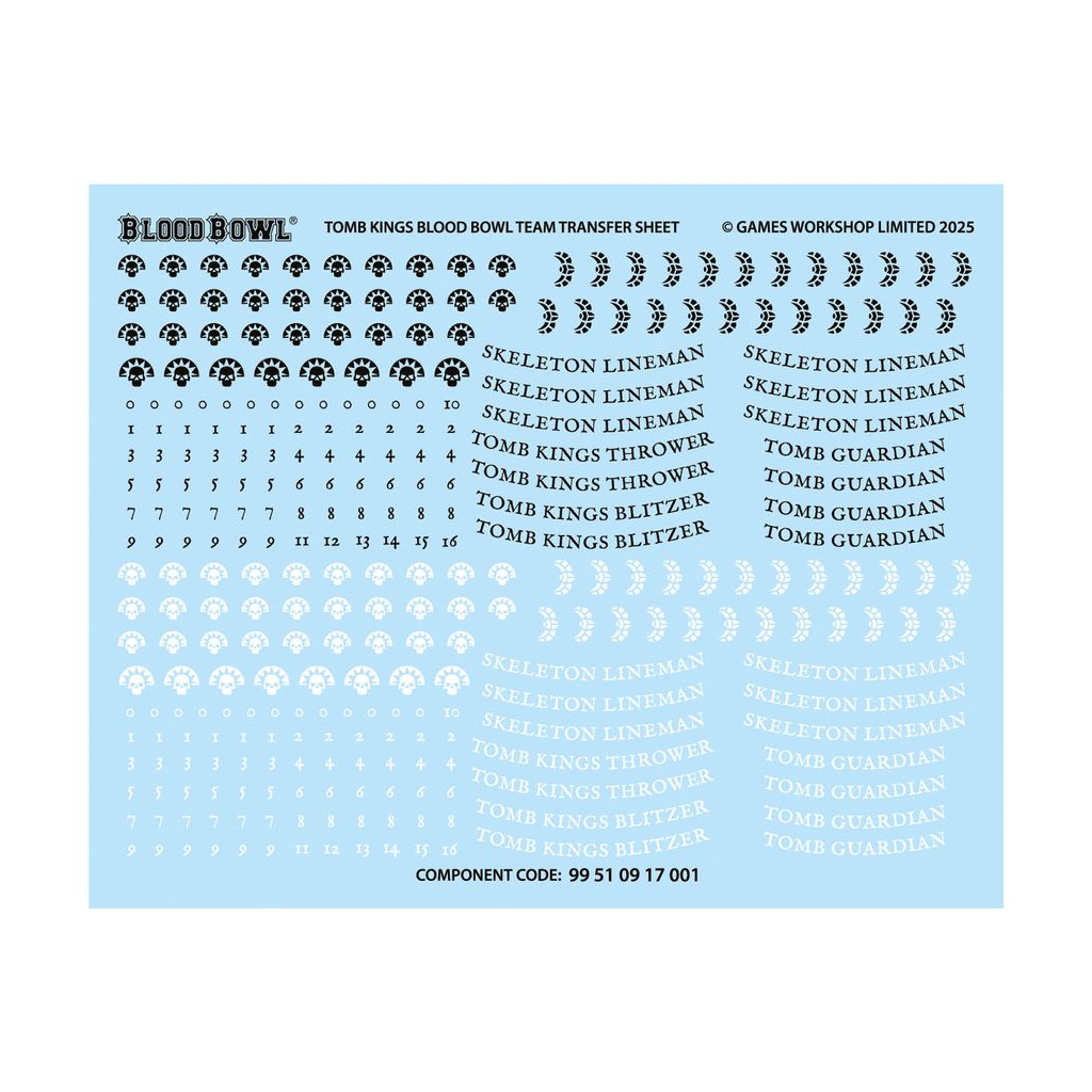 - 1x Planche de Décalcos d'Équipe de Rois des Tombes pour Blood Bowl