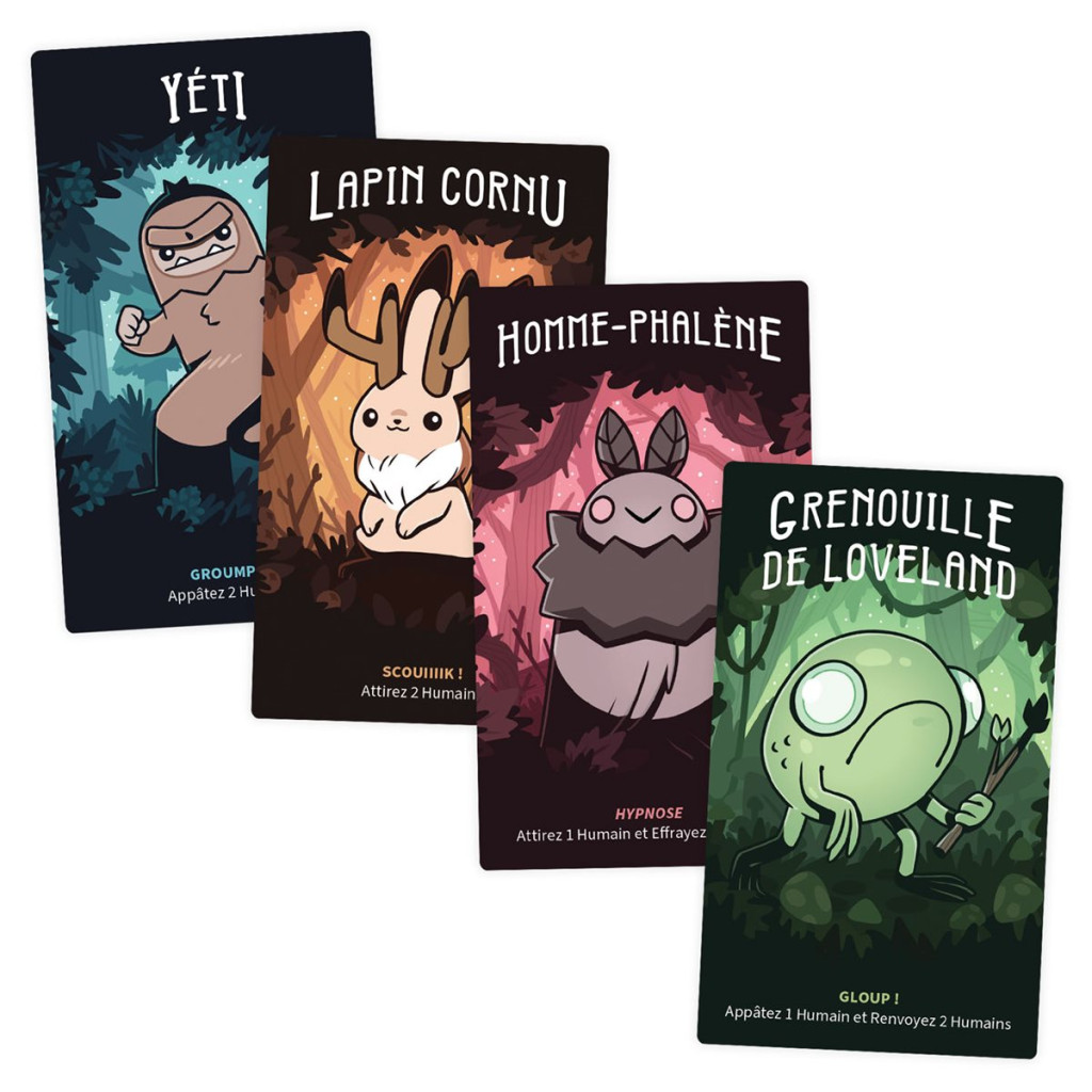 Choisissez votre Cryptide préféré et préparez-vous à jouer ! Chaque carte Cryptide comporte un Pouvoir unique que vous pourrez utiliser à votre avantage pendant la Phase de Jour.