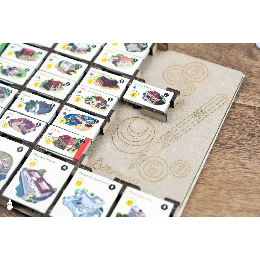 1x plateau de construction, à placer directement sur le carton de construction du jeu.( Emplacements pour chaque bâtiment suivant la configuration d'origine )