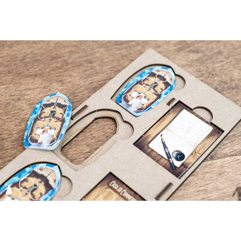 1x plateau prêt à jouer avec des jetons pour les navires, le recrutement et les comptoirs commerciaux