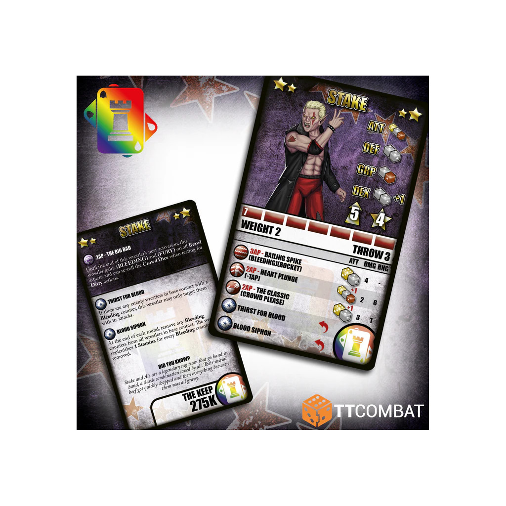 « L'attaque est la meilleure défense », telle est la devise de Stake ; chacun de ses coups est rapide et inflige d'importants dégâts, ce qui fait de lui un attaquant redoutable pour n'importe quelle équipe, mais attention, car il s'attaquera en priorité aux lutteurs blessés pour en faire un repas facile.