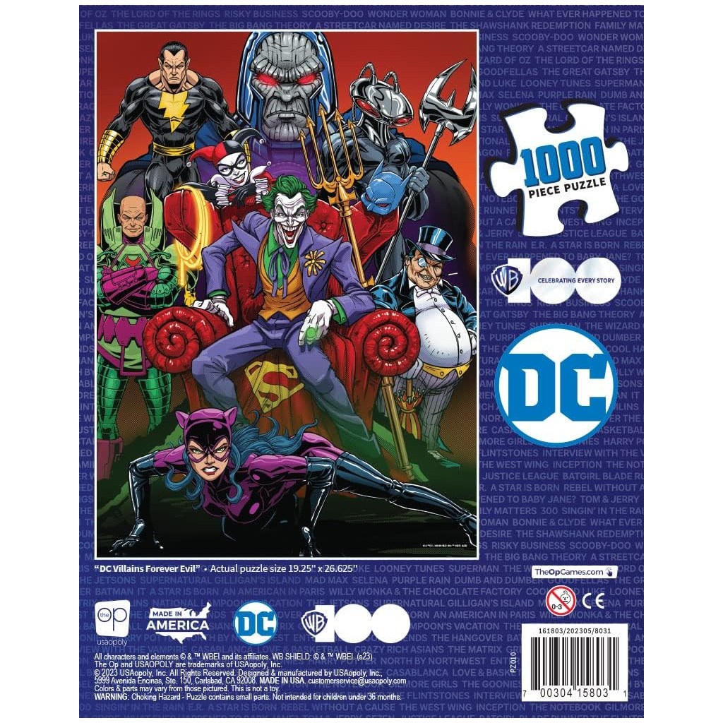 Entrez dans le côté obscur de l’univers DC avec le puzzle DC Villains: Forever Evil de 1000 pièces. Retrouvez les plus grands ennemis de la Justice League dans une illustration spectaculaire, notamment Joker, Harley Quinn, Lex Luthor, Darkseid, Catwoman, Black Adam, le Pingouin et Black Manta. Avec son style graphique emblématique et son format final de 19 x 27 pouces, ce puzzle est parfait à encadrer et à exposer. Un cadeau idéal pour tous les fans de DC Comics, de Batman, Superman, Wonder Woman et Aquaman.