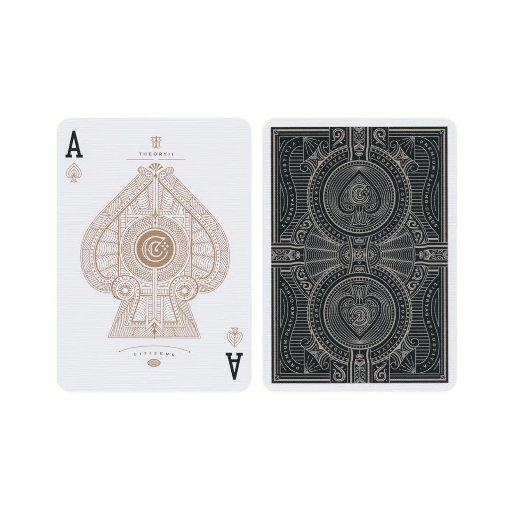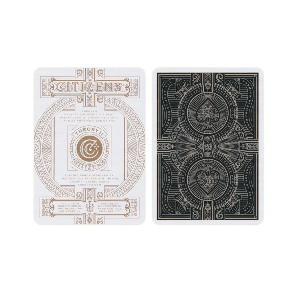 Ce jeu Citizens comprend 56 cartes au format poker, fabriquées aux États-Unis par The United States Playing Card Company, à partir de papier certifié FSC, issu de forêts gérées durablement. Le jeu inclut 2 jokers, 1 carte theory11 et 1 carte double dos (gaff card).