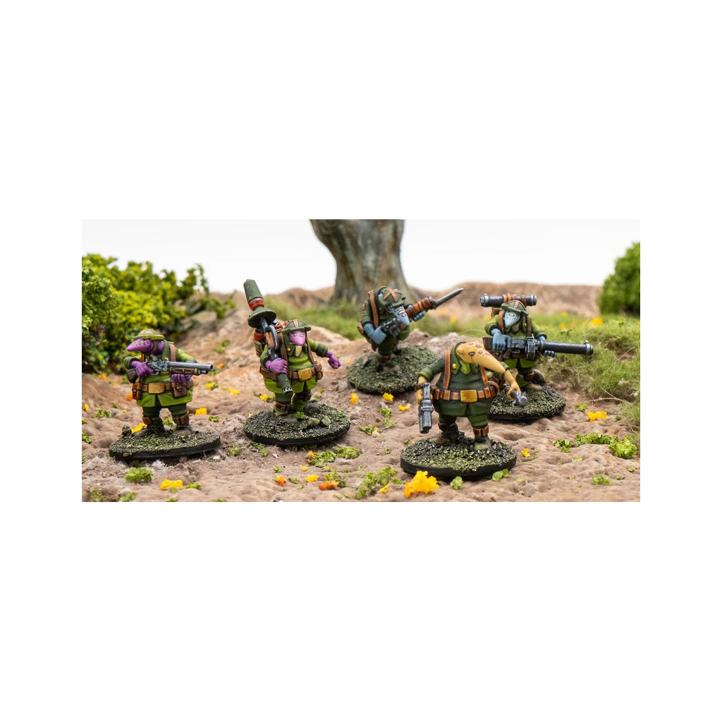Les Trench Raiders mènent des assauts brutaux pour nettoyer les bunkers et les tranchées à l’aide de grenades, de matraques et d’une férocité sans pareille. Les artilleurs H-11a fournissent un tir de couverture mobile pour clouer les ennemis sur place et couvrir l’avance de leur compagnie. Les Torpedo Troopers sont équipés de lanceurs anti-tracteurs à courte portée et hautement explosifs, capables de réduire en ruines même les positions ennemies les plus fortifiées. Quant aux Pathfinders, ils avancent en tête du corps principal pour identifier et parfois neutraliser les menaces.