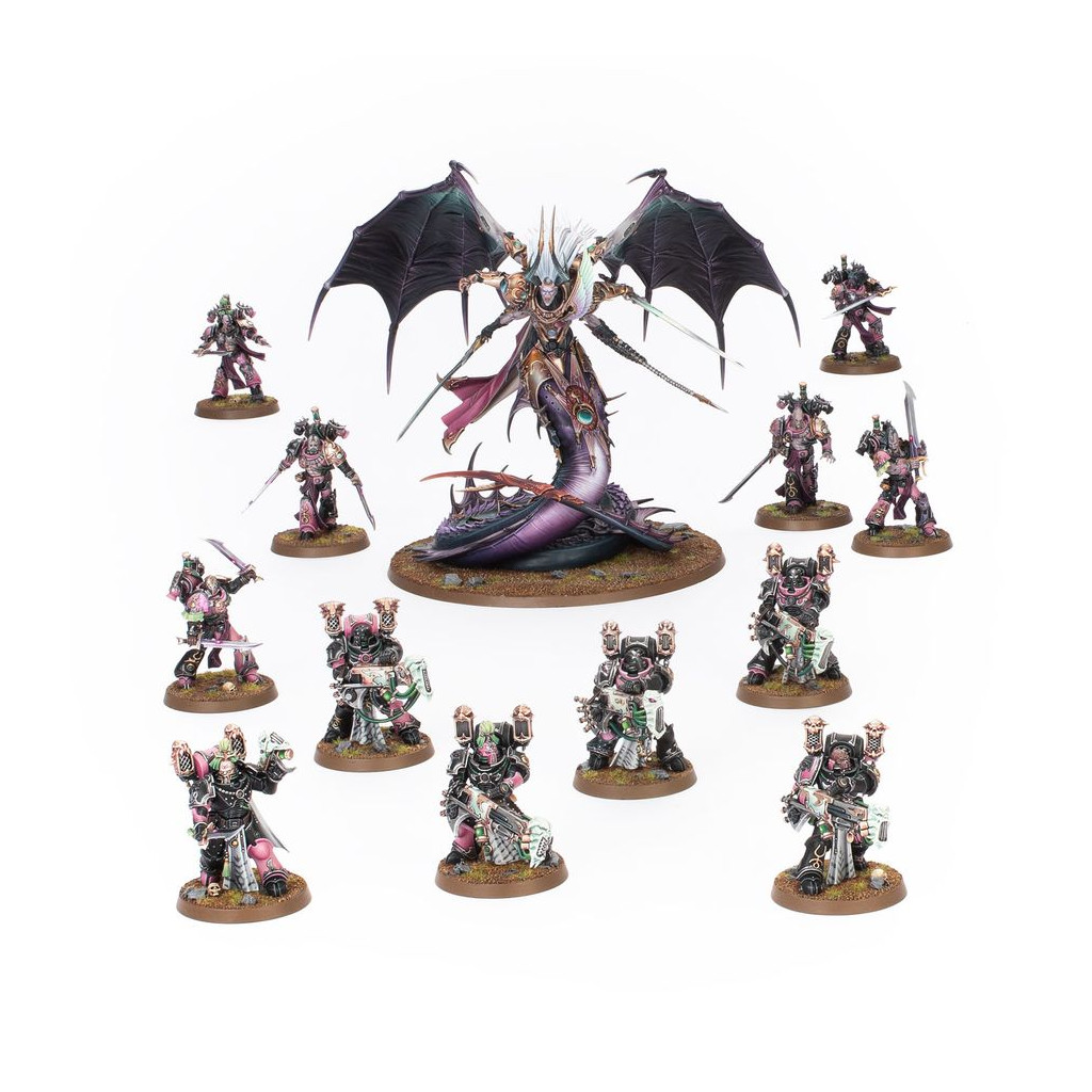 Cette boîte pleine à craquer est parfaite pour entamer une nouvelle collection d'Emperor's Children ou pour étoffer une armée existante que vous pourrez ensuite déchaîner dans les parties de Warhammer 40,000, en faisant des économies par rapport à un achat des kits au détail. Menée par le Primarque Démon lui-même, le fabuleusement infâme Fulgrim, cette force frappera de terreur même les adversaires les plus imperturbables. Des unités d'élite la complètent, des Marines du Vacarme semant une dévastation sonique et des Lames Infaillibles sans égales au corps à corps.