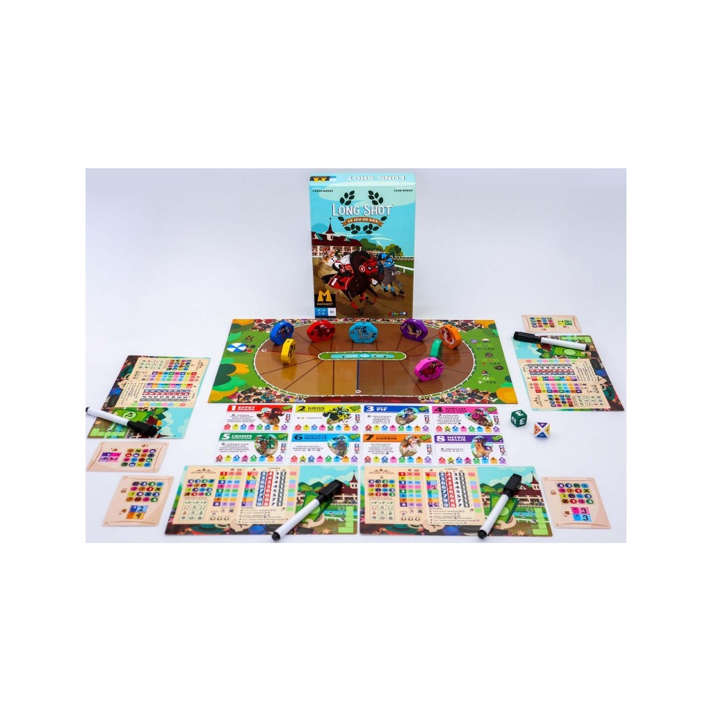 Dans Long Shot : Le Jeu de Dés, jusqu'à huit joueurs élaborent des stratégies et tentent leur chance lors d'une course hippique palpitante à huit chevaux.