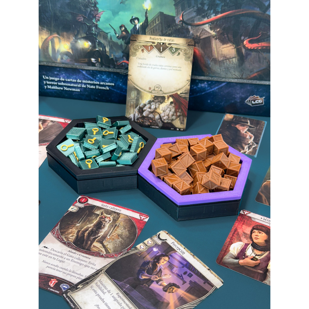 Gardez votre table de jeu bien rangée grâce à ces bacs magnétiques hexagonaux pour jetons. Tous les bacs s'assemblent instantanément grâce à de puissants aimants, vous permettant ainsi de créer une configuration propre et modulaire. L'intérieur doublé de velours protège vos jetons et ajoute une touche de douceur et de raffinement.