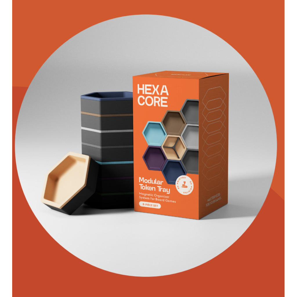 Améliorez vos soirées jeux avec ces plateaux hexagonaux modulaires et magnétiques — parfaits pour organiser vos pièces et composants de jeux de société. Set de 8.