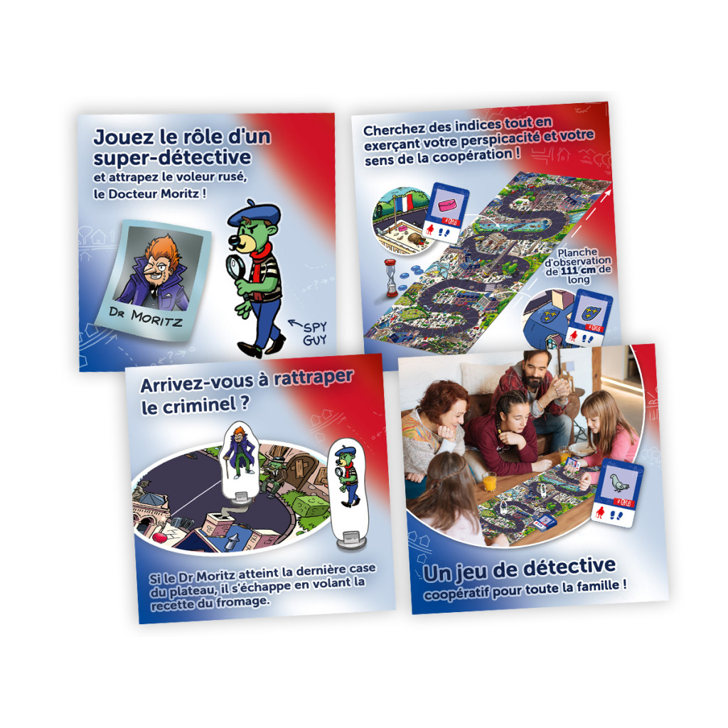 Dans Spy Guy – France, un mystérieux voleur a dérobé le secret du meilleur fromage français ! Votre mission est claire : aider Spy Guy à retrouver le coupable avant qu’il ne s’échappe. Le but du jeu est de coopérer pour rassembler un maximum d’indices et permettre au célèbre détective de le rattraper à temps.