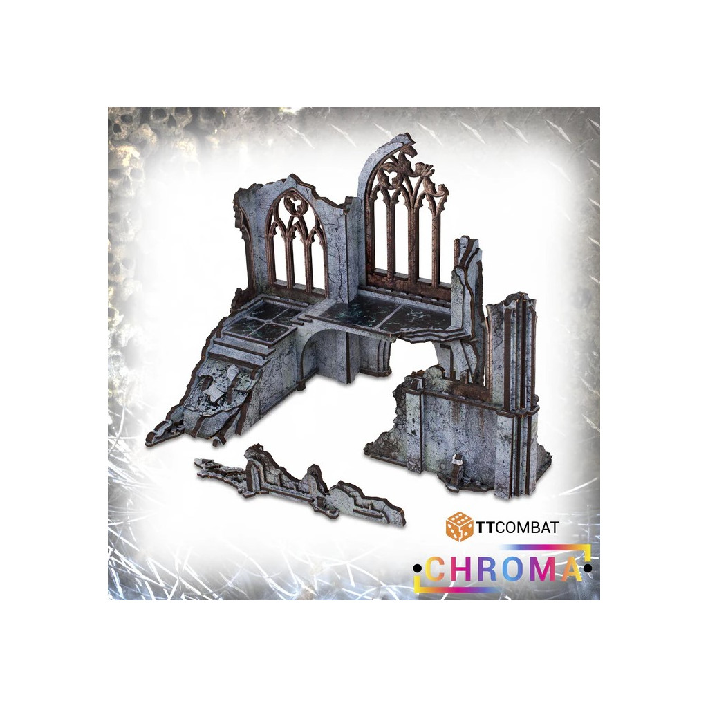 Le kit Ruined Grand Entrance est fabriqué à partir de MDF pré-coloré de 3 mm à l'aide d'une encre UV résistante. Il s'agit d'un excellent kit de décor à utiliser dans les jeux d'escarmouche de science-fiction et qui fonctionnera parfaitement avec les jeux et les figurines de 28 à 32 mm.