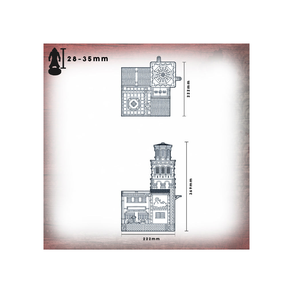Le kit Market Tower est fabriqué en MDF pré-peint de 3 mm, imprimé avec une encre UV résistante. C’est un excellent élément de décor pour les jeux d’escarmouche de science-fiction et il s’adapte parfaitement aux figurines et jeux à l’échelle 28-32 mm.