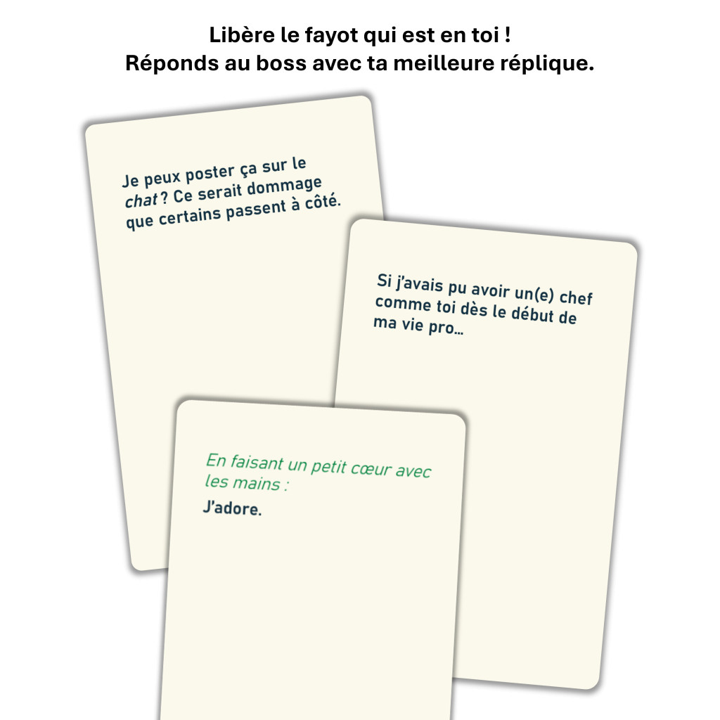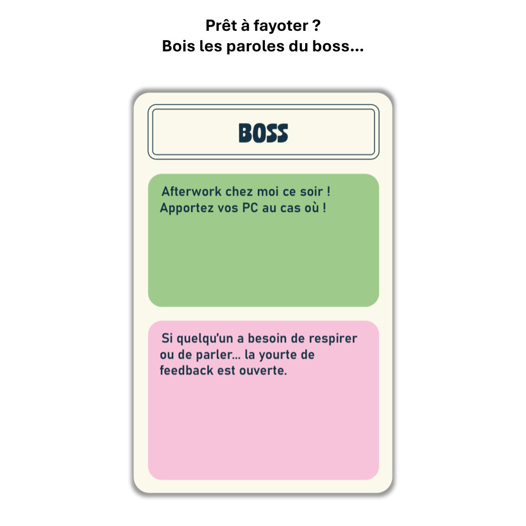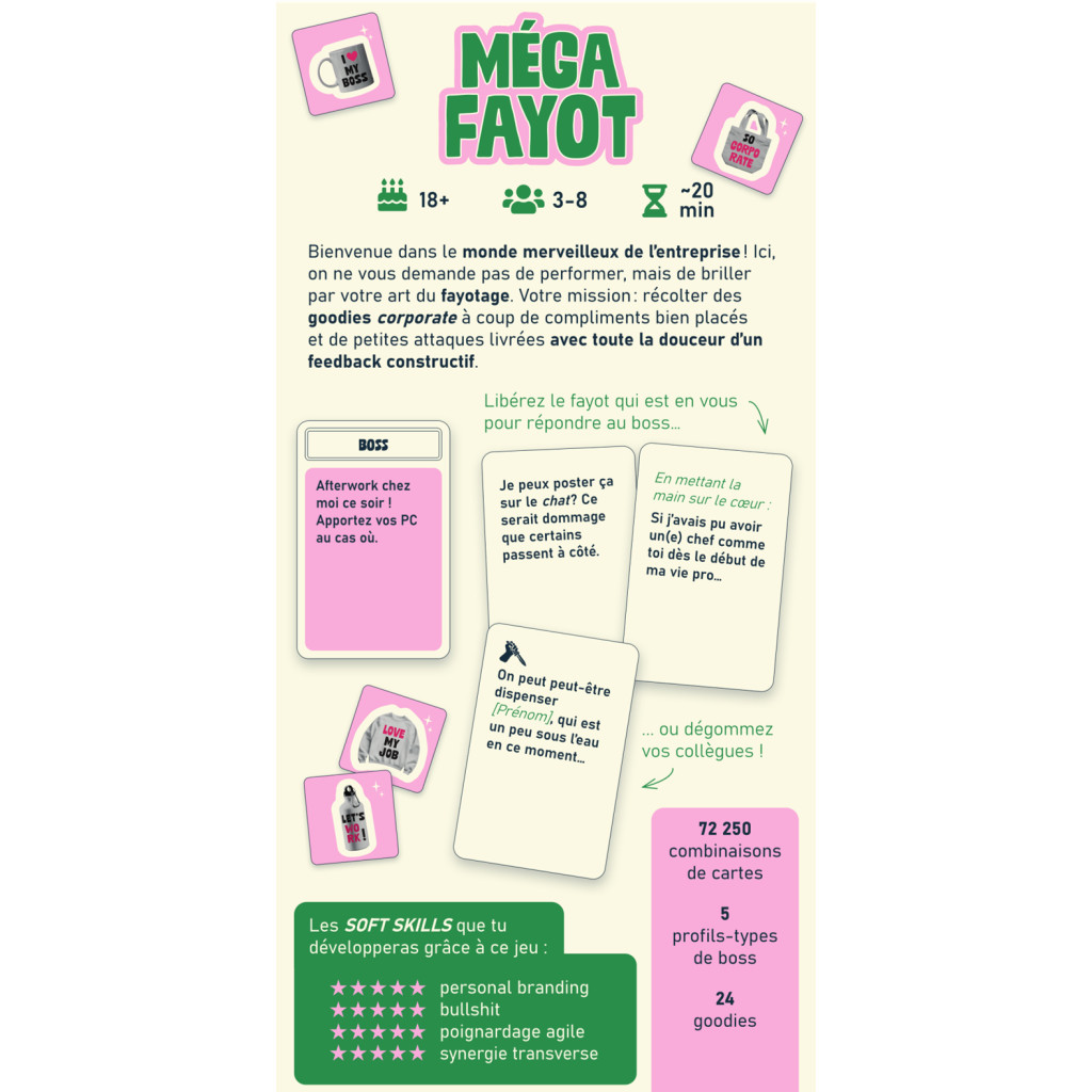 Vous avez tous connu un fayot. Peut-être même que vous en êtes un(e). Ce jeu transforme l’hypocrisie corporate en sport national !