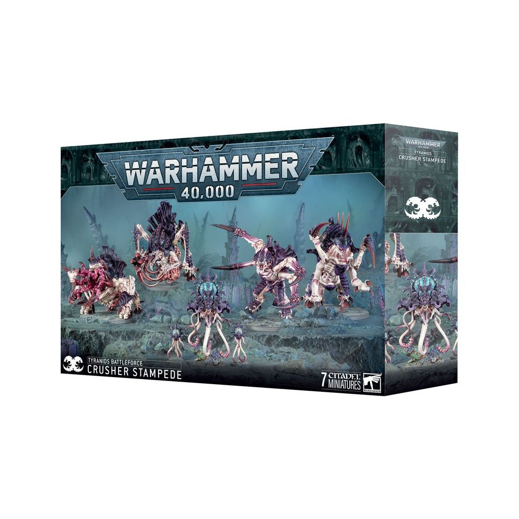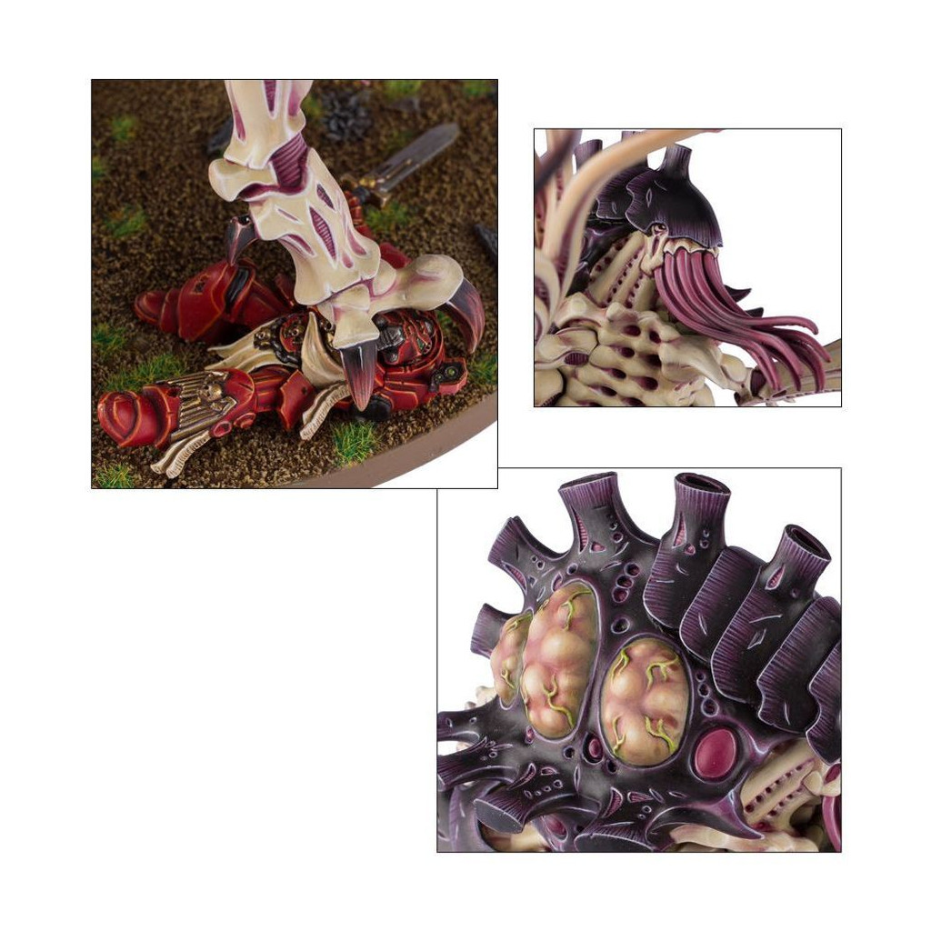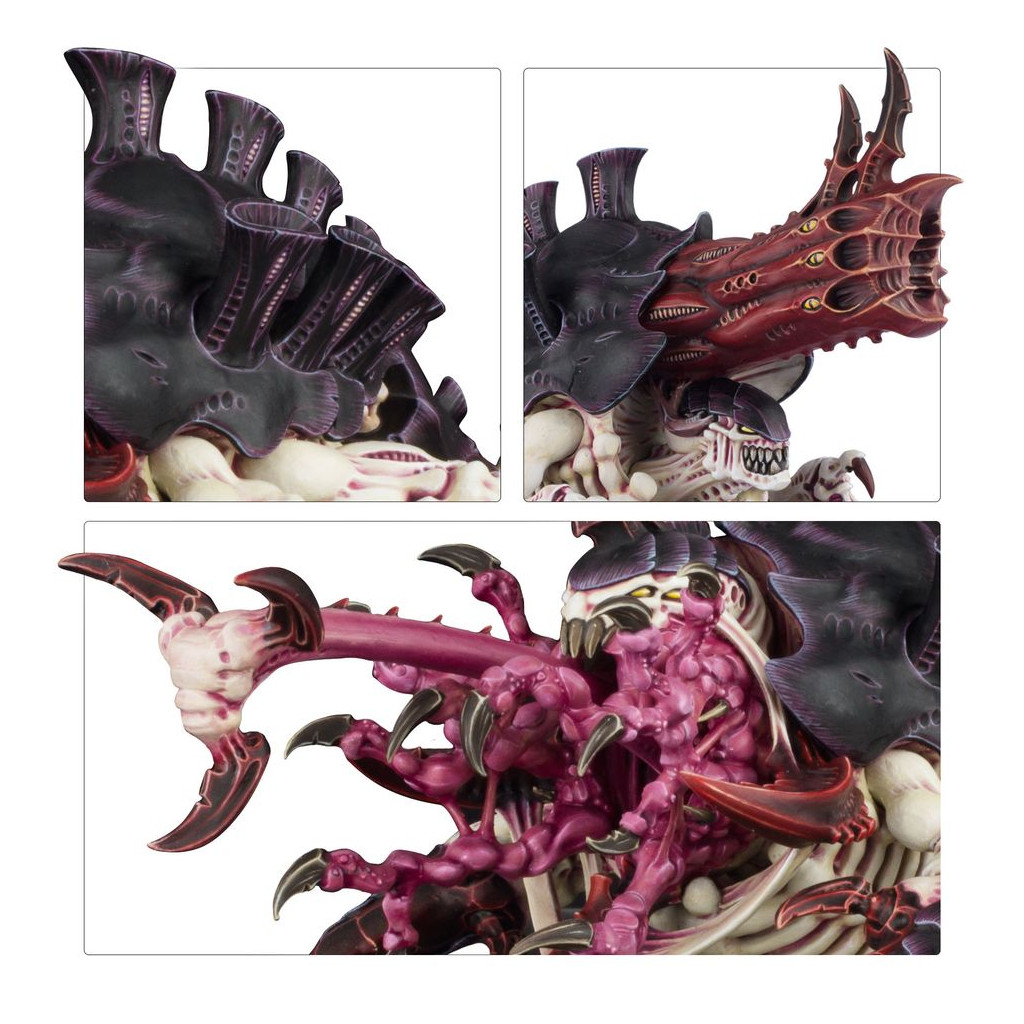 Lorsque les Tyranides font face à une proie particulièrement robuste, l'Esprit-ruche peut déployer ce que les strategos impériaux appellent une Ruée Broyeuse. Ces essaims s'articulent autour de monstres colossaux menés par certaines des créatures synapses les plus physiquement imposantes que les vaisseaux-ruches puissent vomir. Soutenues par des chars d'assaut vivants comme le Tyrannofex et l'Exocrine, les Ruées Broyeuses écrasent tout ce qui se dresse sur leur chemin.