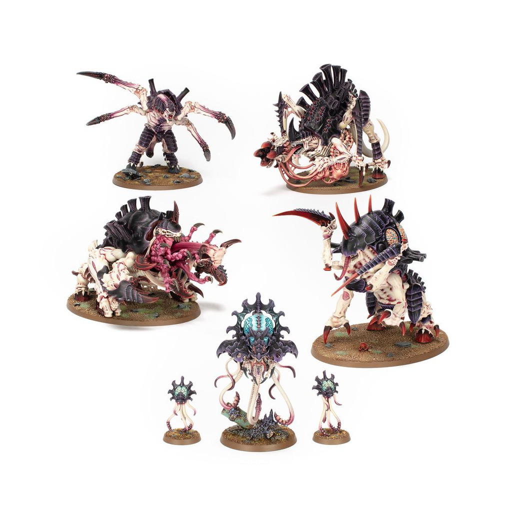 Cette boîte pleine à craquer est parfaite pour entamer une nouvelle collection de Tyranides ou pour étoffer une armée existante que vous pourrez ensuite déchaîner dans les parties de Warhammer 40,000, en faisant des économies par rapport à un achat des kits au détail. Menée par un Neurotyran et ses Neuroloïdes asservis, cette force est constituée de bêtes surpuissantes. Vous trouverez un Tueur-hurleur, un Tyrannofex, un Haruspex et un Maleceptor, de quoi terroriser n'importe quel adversaire. Chacune de ces créatures est une menace à part entière, capable de faire des ravages tout en encaissant de terribles dégâts. Quand elles sont combinées, elles forment une puissante armée qui présentera un défi à vos adversaires pour réussir à en venir à bout.
