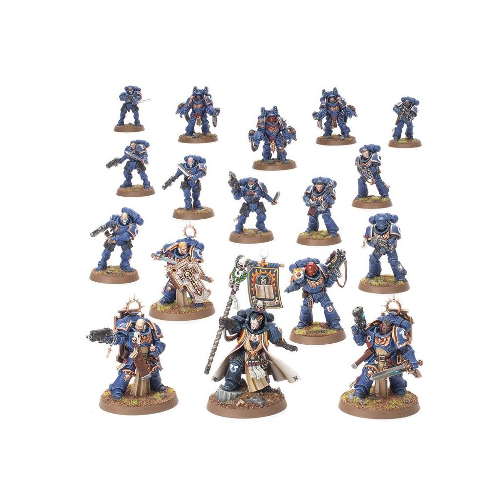 Si votre objectif est de protéger l'Imperium en respectant le code à la lettre, cette boîte est le moyen idéal d'entamer une nouvelle collection des Ultramarines ou d'étoffer une armée existante tout en faisant des économies par rapport à un achat des kits au détail. Cette force est menée par le Maître Archiviste Tigurius, le plus puissant psyker du Chapitre, mais aussi un guerrier polyvalent qui excelle en toute situation. Une unité de Vétérans Bladeguards assure sa protection rapprochée, tandis que des Aggressors offrent leur soutien à distance et n'hésitent pas à à se jeter sur l'adversaire au besoin. Une escouade hautement mobile de Reivers se charge de prendre les objectifs vulnérables et de harceler les unités ennemies, et des Intercessors viennent compléter les rangs et apporter un appui-feu bienvenu tout en s'emparant des principaux objectifs. Ces 17 figurines en plastique constituent une force complète des Ultramarines pour les parties réduites et tactiques au format Patrouille de Warhammer 40,000. Les règles de cette Patrouille sont disponibles en téléchargement gratuit sur le site de Warhammer Community.