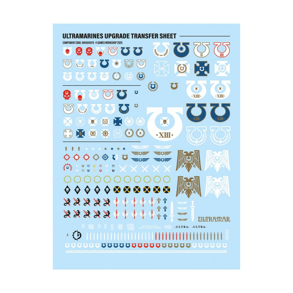 Ce kit est fourni avec une toute nouvelle Planche de Décalcos des Ultramarines, proposant 255 décalcos de grande qualité. Elle comporte des icônes de Chapitre des Ultramarines, des symboles de rôle tactique, des badges de campagne, des chiffres et des marquages honorifiques, ainsi que de plus grandes décalcos pour décorer les véhicules.