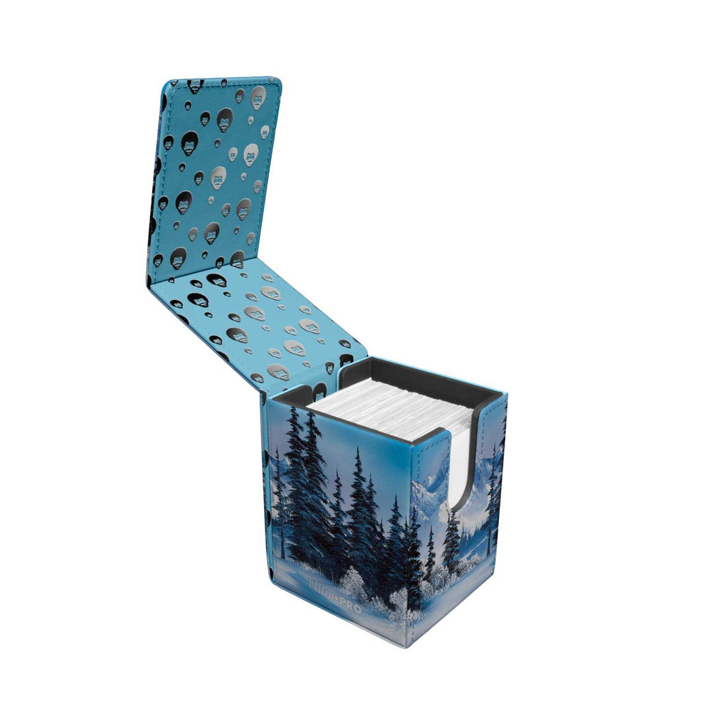 Cette deck box illustrée par Bob Ross peut contenir jusqu'à 100 cartes.