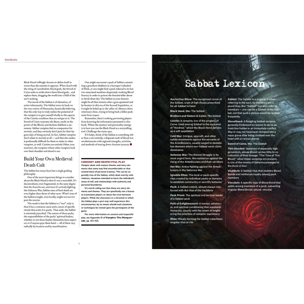 Sabbat: La Main Noire est un supplément complet pour le jeu de rôle Vampire: La Mascarade 5e Édition, spécialement conçu pour les conteurs (storytellers) et les joueurs adultes qui souhaitent approfondir leur expérience de jeu. Plongez dans le monde du Sabbat, ces vampires fanatiques qui ont renoncé à leur humanité pour se livrer aux sombres pouvoirs de Caïn.
