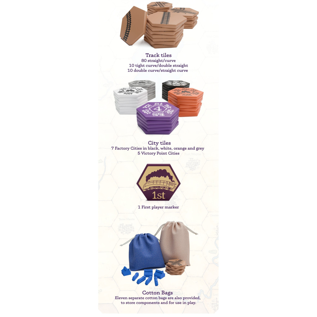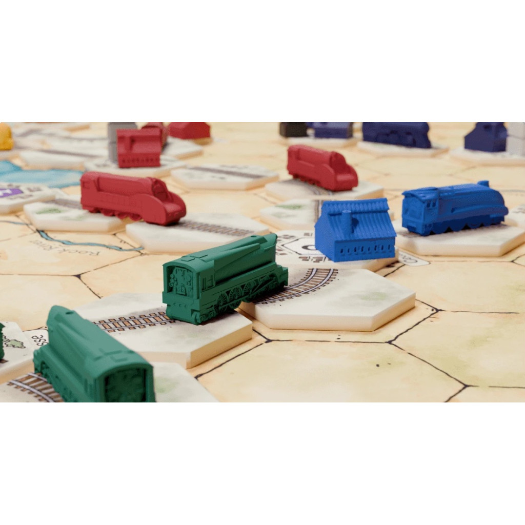 À votre tour, vous pouvez effectuer deux actions parmi plusieurs choix, vous permettant de poser des rails, construire des usines, remplir des contrats, gagner de l'argent ou obtenir davantage de contrats. Construire une usine apporte des ressources au plateau auxquelles tous les joueurs ont accès... mais à un certain prix.