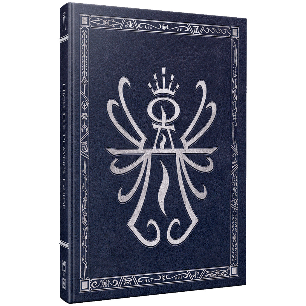 High Elf Player's Guide est l’ouvrage de référence ultime pour créer et incarner des personnages hauts elfes dans Warhammer Fantasy Roleplay. Il se présente dans une somptueuse reliure en simili cuir bleu profond, avec des tranches argentées et un signet en satin argenté.