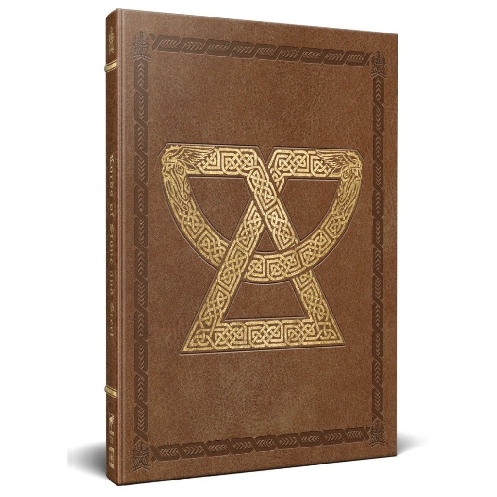 L’édition collector de Lords of Stone and Steel est reliée dans une solide couverture en similicuir, ornée d’une rune stylisée dorée à chaud, emblème le plus courant du bastion nain de Karak Norn.