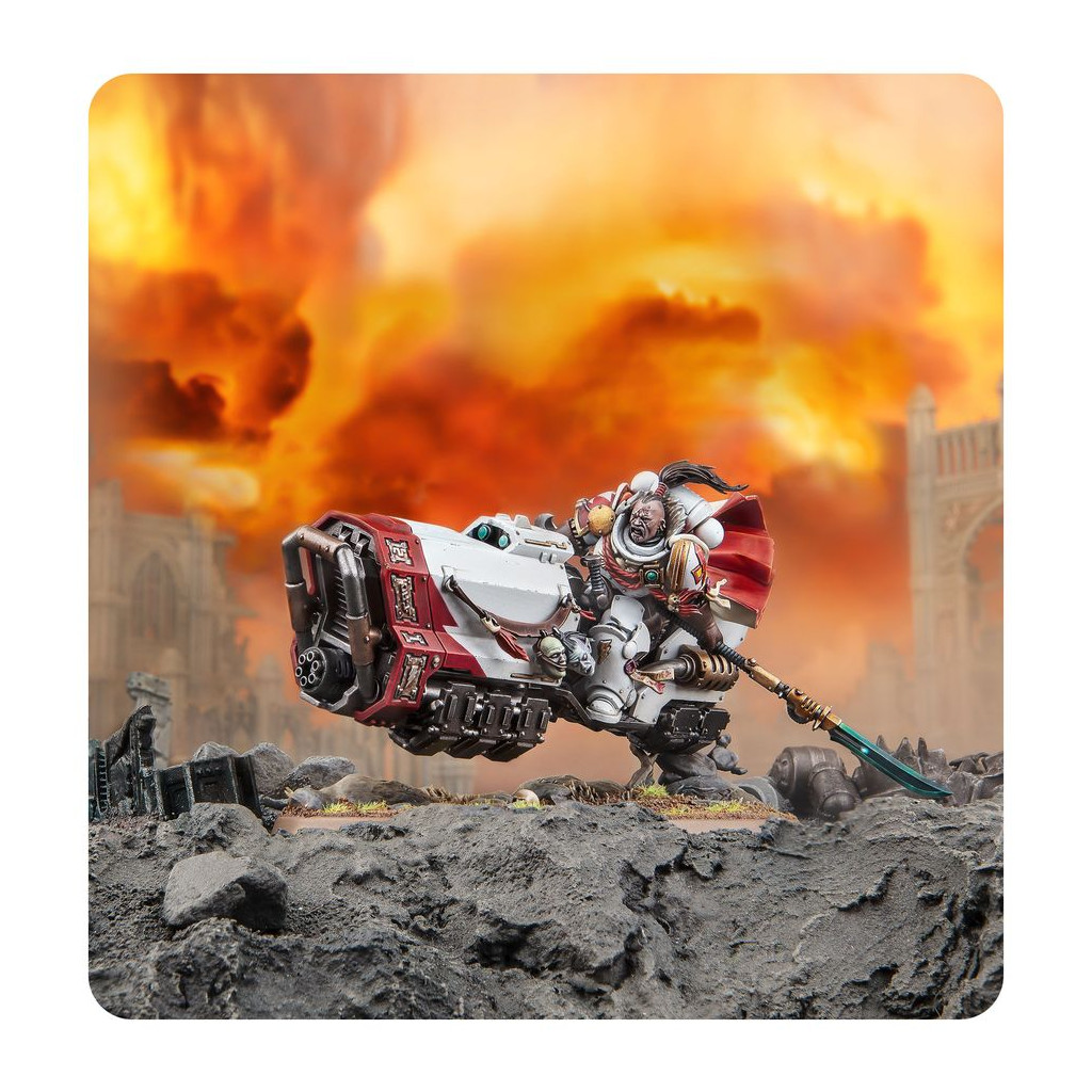 Suboden Khan est un authentique fils de Chogoris qui dirige la Première Confrérie des White Scars, monté sur Tonnerre, sa moto antigrav. Maître du combat en selle, il mène ses forces dans des chasses épiques et des poussées fulgurantes, en allant percuter les lignes ennemies et faucher implacablement les adversaires mis en fuite.