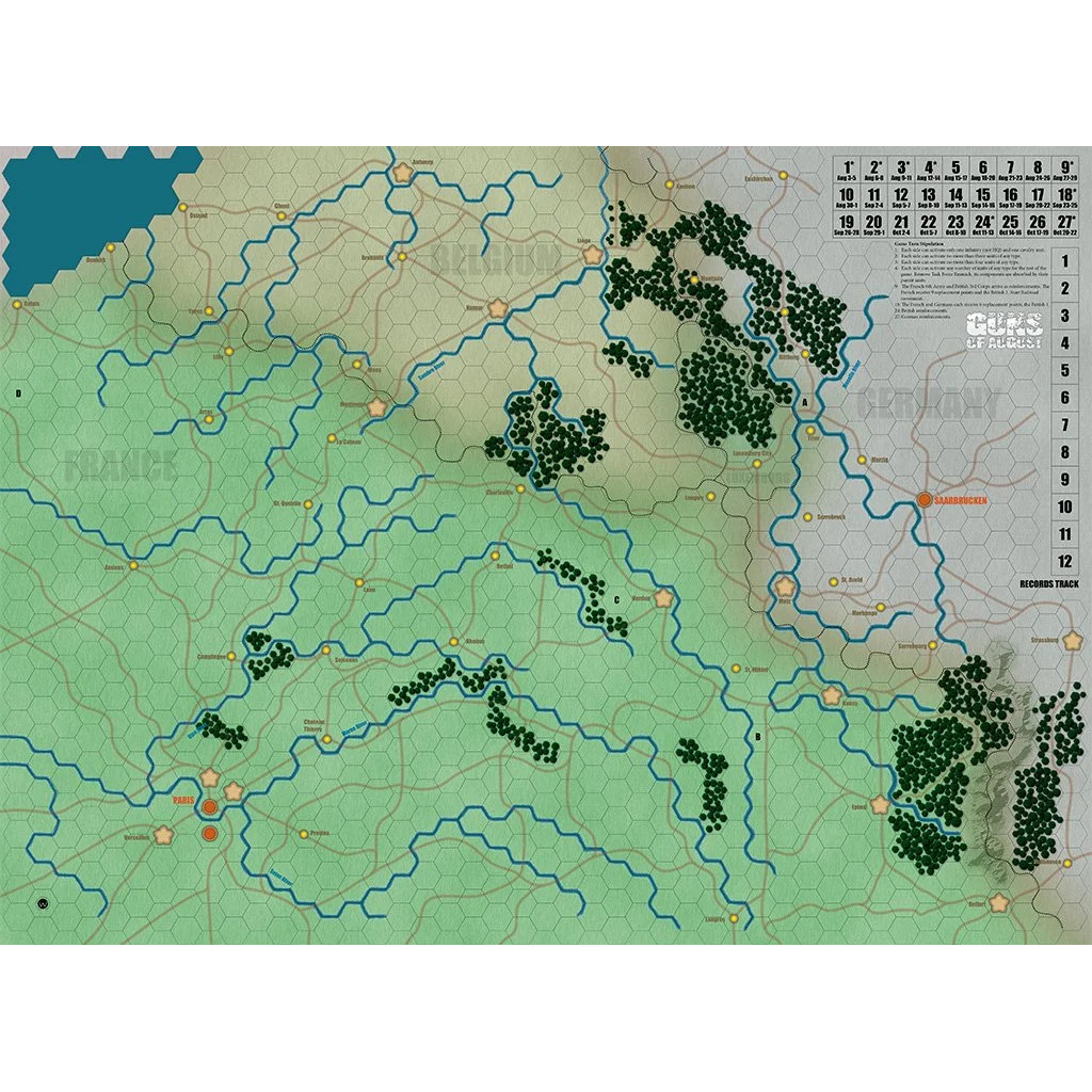 Guns of August couvre les trois premiers mois de la Première Guerre mondiale en Europe occidentale, lorsque la mobilité dominait et que le sort de la France était en jeu.