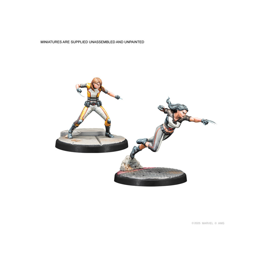 Ce set contient les figurines, les cartes Statistiques et les cartes Tactique d’Équipe des 4 membres de la X-Force, s : Cable, Domino, X-23 et Honey Badger.