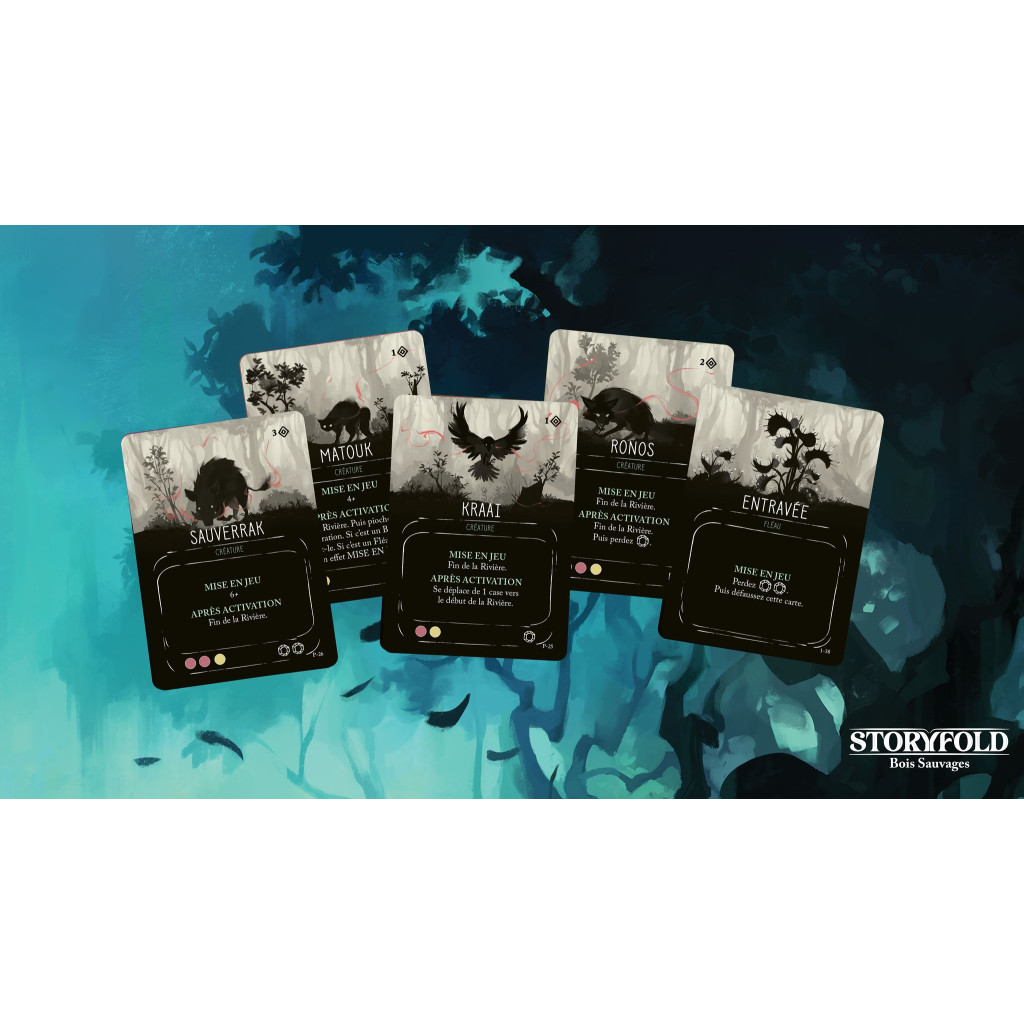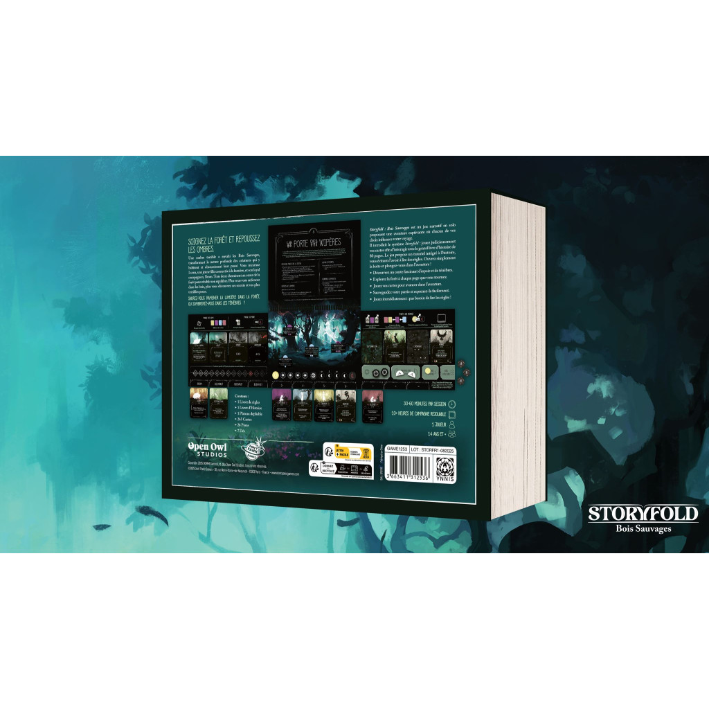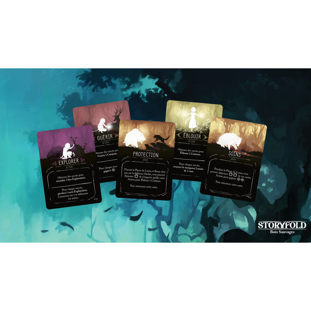 Storyfold : Bois Sauvages est un jeu narratif en solo proposant une aventure captivante où chacun de vos choix influence votre voyage. Il introduit le système Storyfold : jouez judicieusement vos cartes afin d’interagir avec le grand livre d’histoire. Le jeu propose un tutoriel intégré à l’histoire, vous évitant d’avoir à lire des règles. Ouvrez simplement la boîte et plongez-vous dans l’aventure !