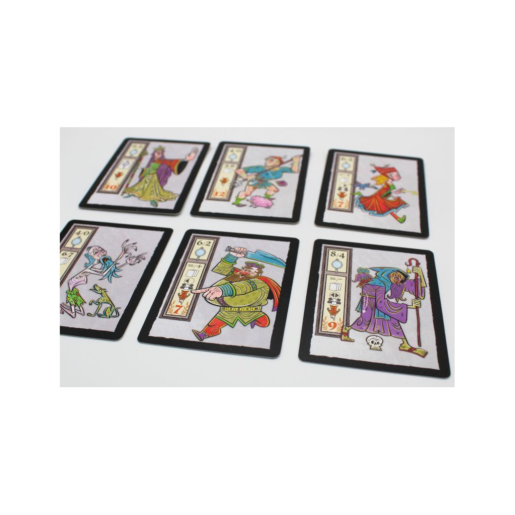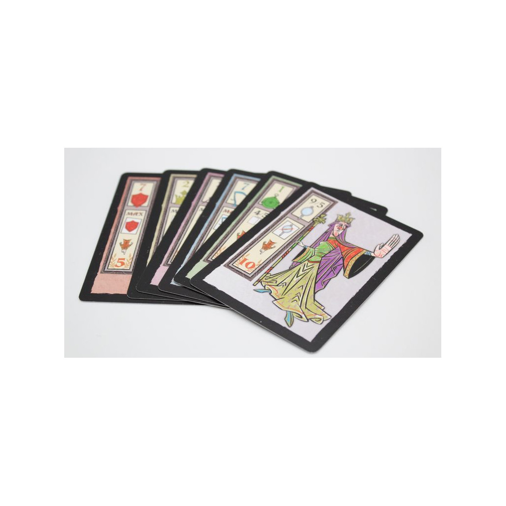 Les couleurs du jeu sont chargées de symbolisme médiéval, chacune étant associée à un objet et une couleur représentant différents statuts de l'époque. De plus, les figures du jeu, telles que La Reine, L'Ermite et Le Fou, apportent des personnalités uniques qui peuvent changer le cours de la partie. Maîtrisez les cartes, respectez vos avíos et prouvez que vous êtes la personne la plus astucieuse !