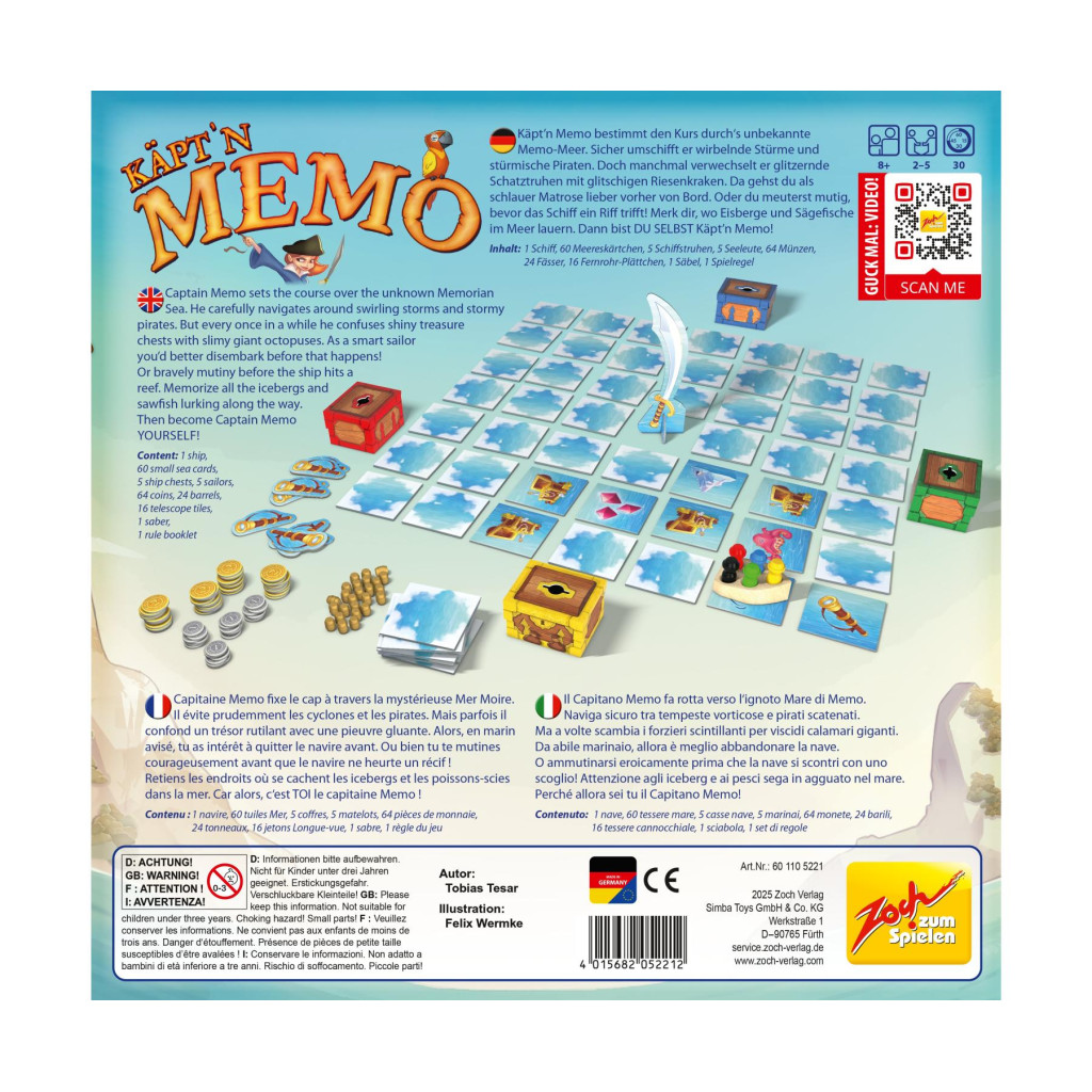 Capitaine Memo fixe le cap à travers la mystérieuse Mer Moire. Il évite prudemment les cyclones et les pirates. Mais parfois il confond un trésor rutilant avec une pieuvre gluante. Alors, en marin avisé, tu as intérêt à quitter le navire avant. Ou bien tu te mutines courageusement avant que le navire ne heurte un récif !