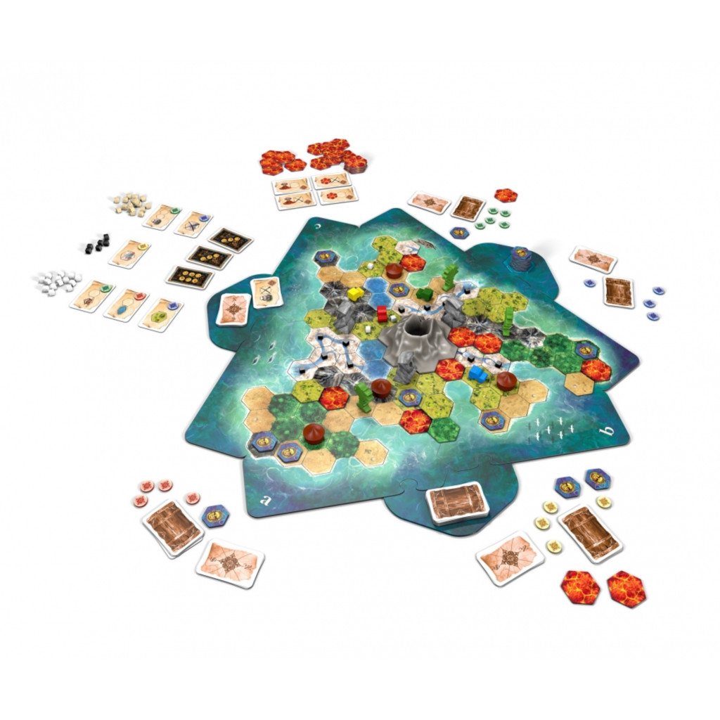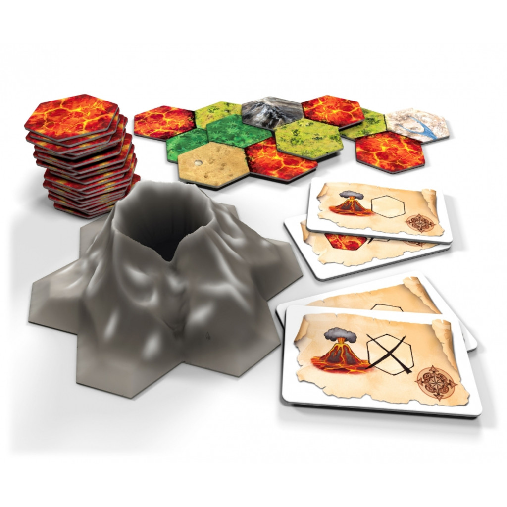 Dans le jeu original, le trésor était attendu sous les palmiers, à côté des huttes, dans les forêts et dans les montagnes. Grâce à un volcan qui occupe sept des cases du plateau de jeu et qui s'élève maintenant très haut au-dessus du plateau de jeu, la lave entre dans la partie. Lors de la mise en place, chaque joueur place une tuile triangulaire de trois hexagones près du périmètre de l'île, l'un de ces hexagones étant recouvert de lave ; le pion du joueur démarre sur un autre de ces hexagones.